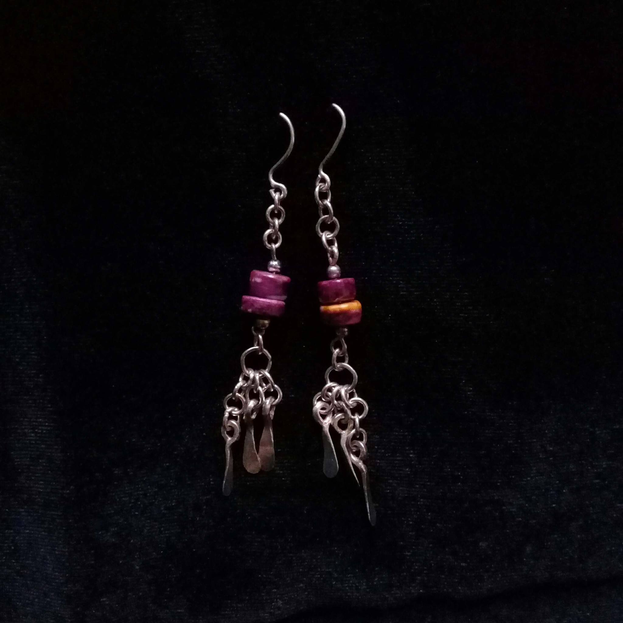 Aretes de Plata 1000K spondylus y placas colgadas. ¡100% hecho a mano!