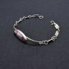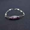 Hermosa y original pulsera con mucha personalidad. Plata pura con eslabones, placas rectangulares, spondylus lila, tipo esclava