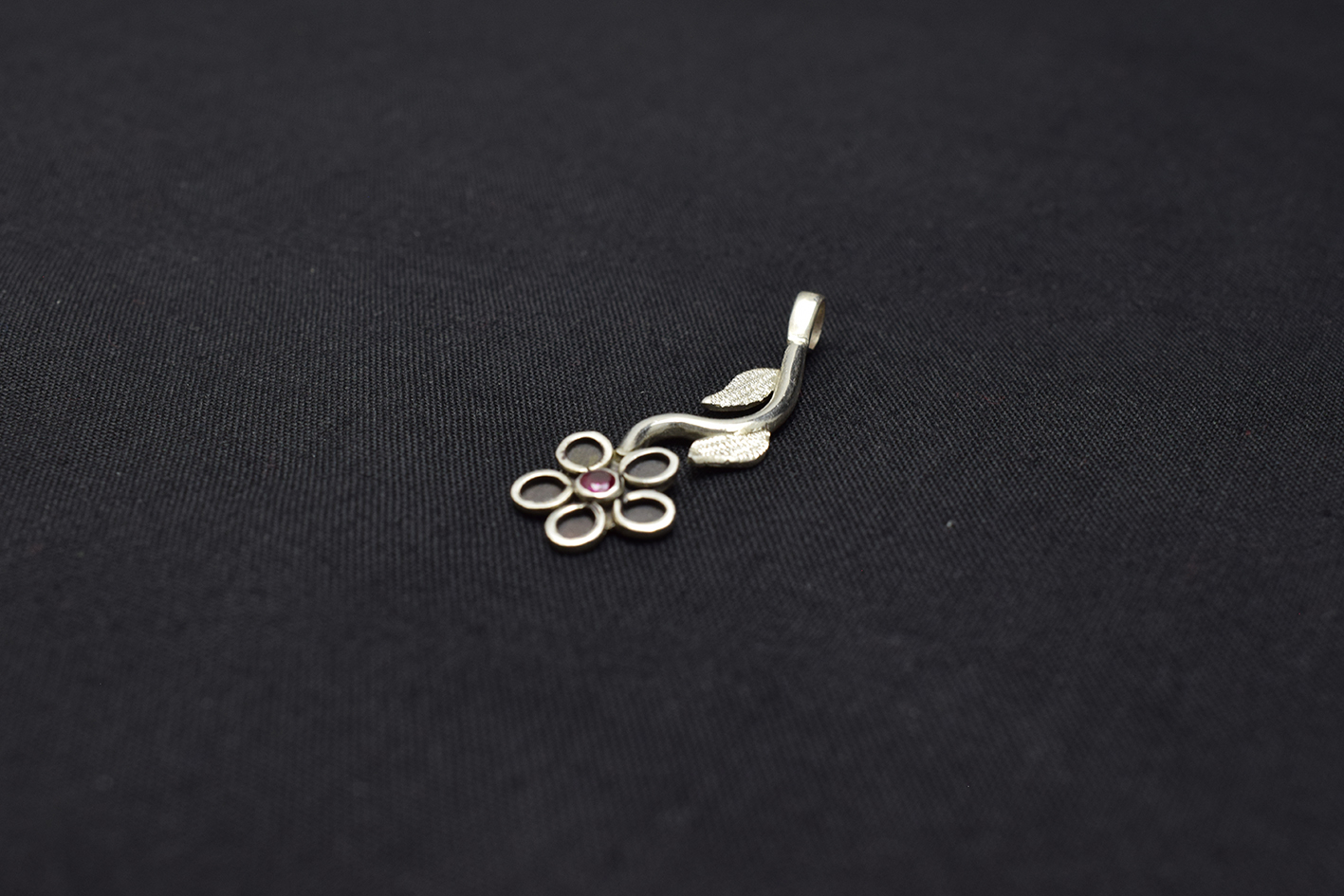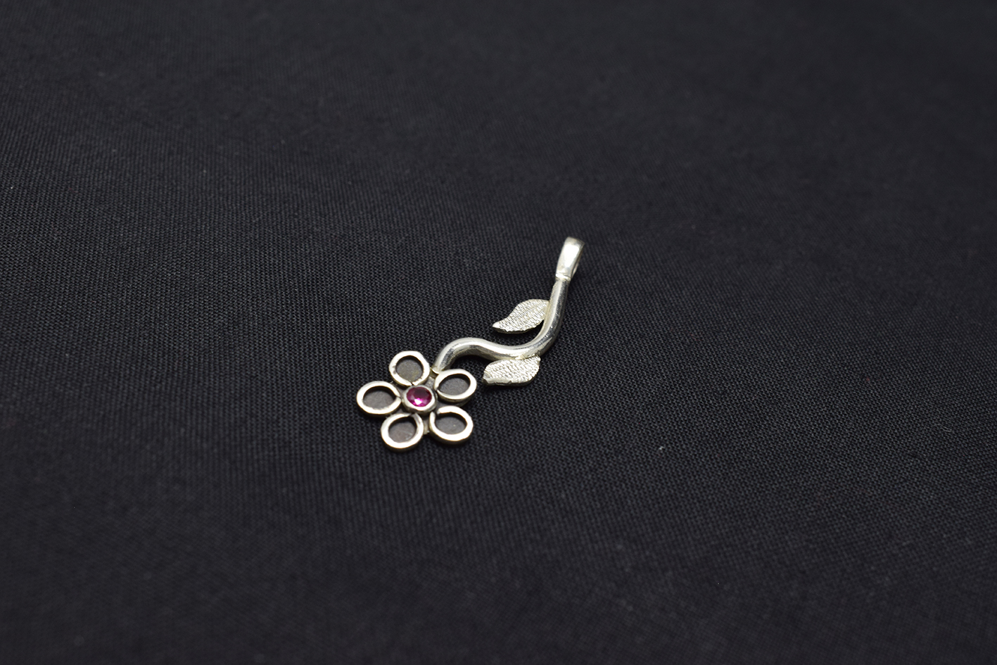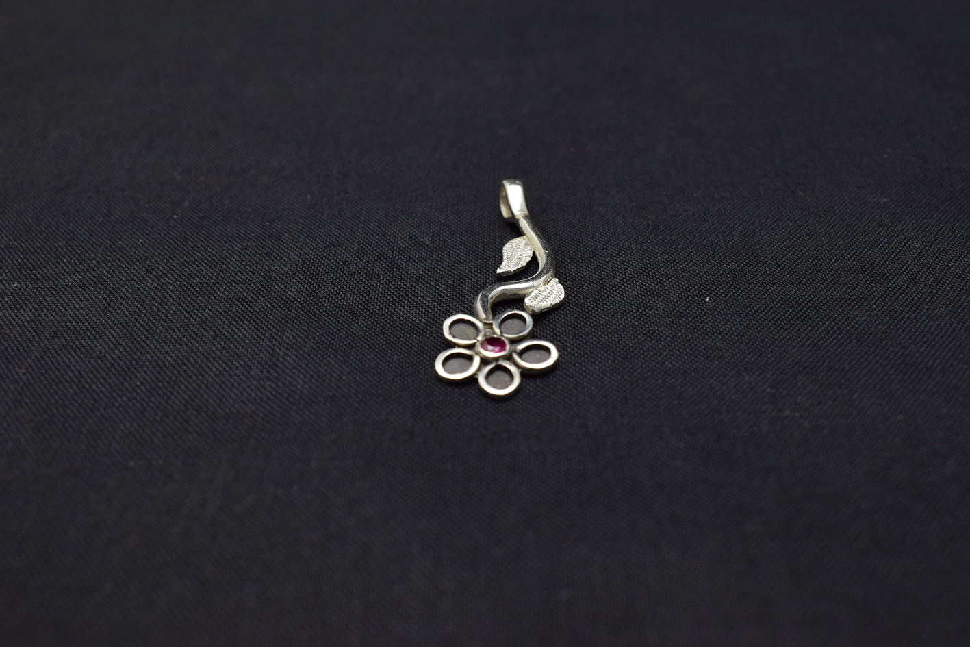 Hermoso Dije de Plata Pura 999k En forma de Flor de 5 Hojas, Pétalos y Circón Rojo al Centro.