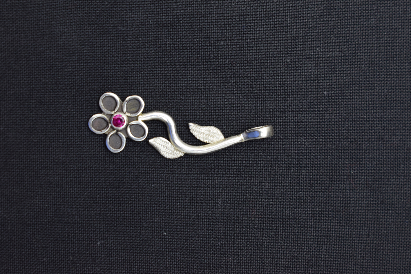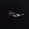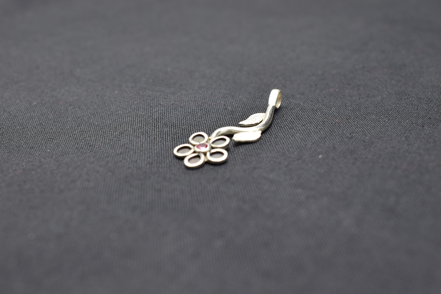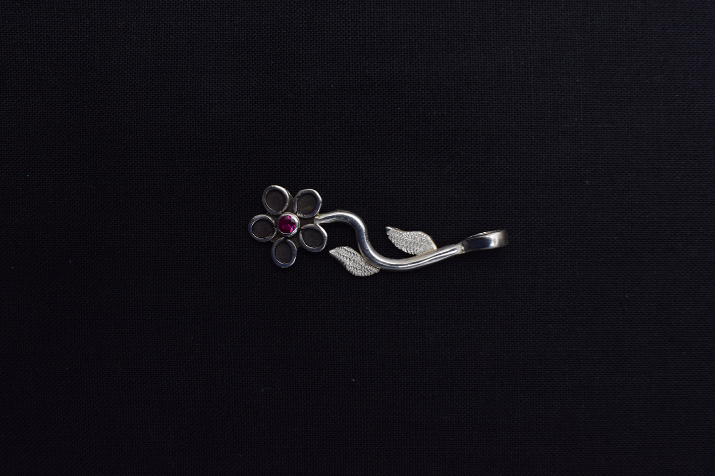 Hermoso Dije de Plata Pura 999k En forma de Flor de 5 Hojas, Pétalos y Circón Rojo al Centro.