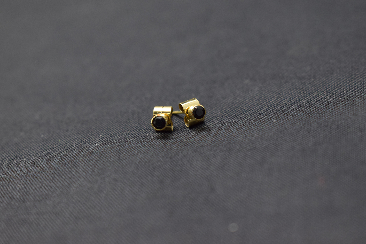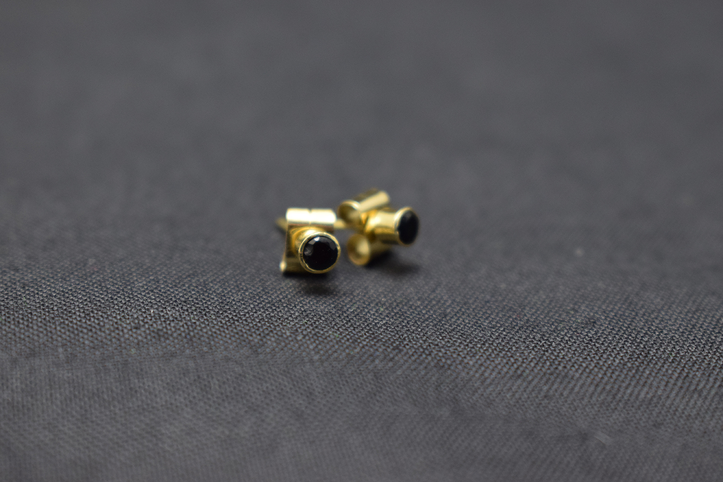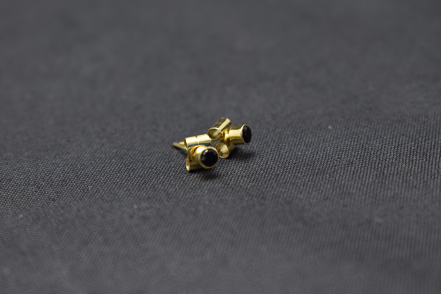 Pequeños y delicados Aretes tipo Topos en Oro de 18k con Ónix